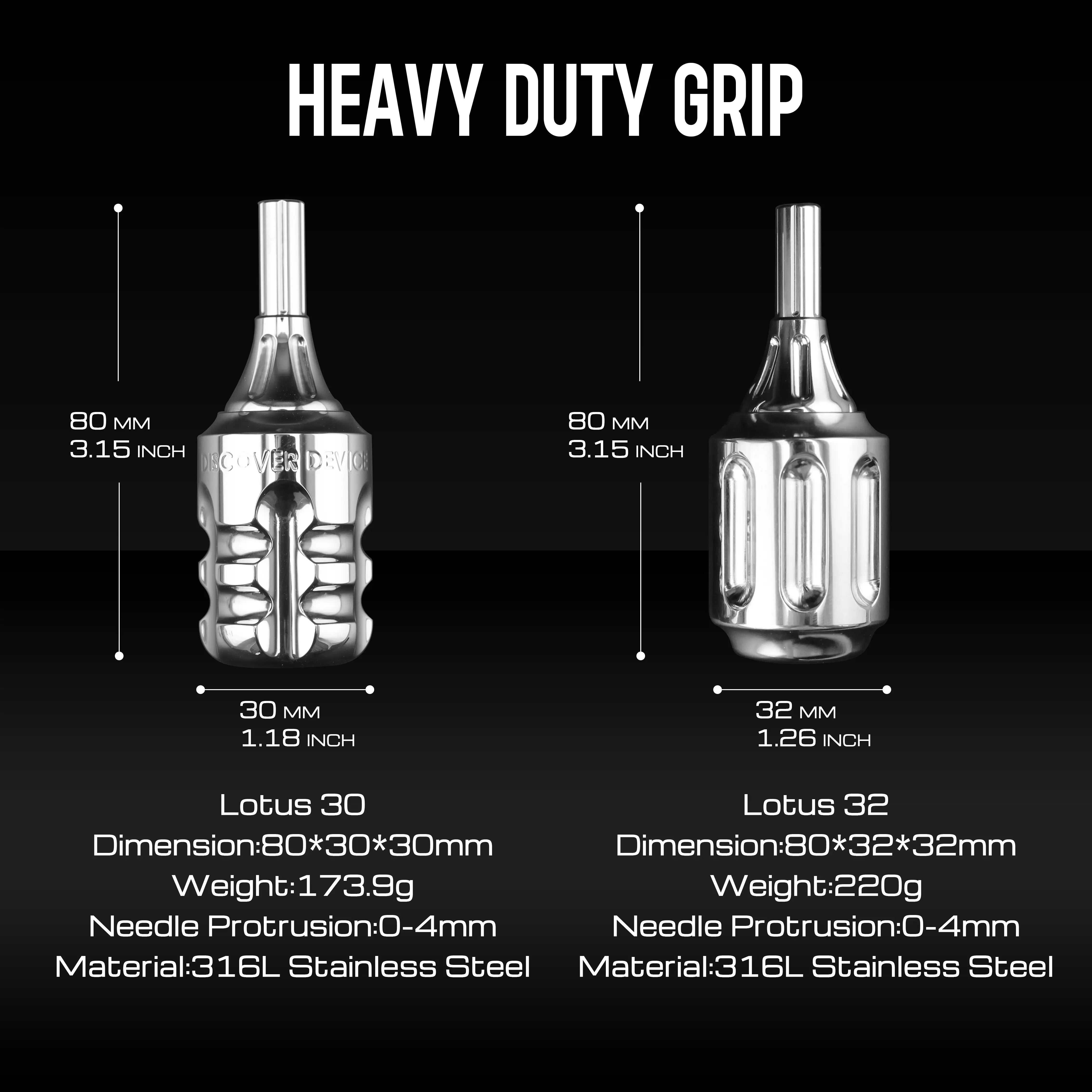Tattoo Cartridge Grips- Heavy 30mm Medical Grade 316L Stainless Steel Tattoo Cartridge Grips- Heavy 30mm Medical Grade 316L Stainless Steel